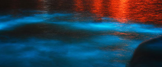 of the river causes the microbes to move and glow with a neon-green color. The phosphorescence is so marked