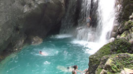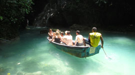 Somerset Falls is a picturesque waterfall which is smaller and more tranquil than Dunn's River Falls. The falls run through a former indigo and spice plantation and are set amongst a scenic backdrop of woodland and rocks. To see the falls you need to take a boat trip up the Daniels River (the price of this trip is included in the entry price).step into the awaiting boat to start your journey into another world which we call ‘the hidden falls.